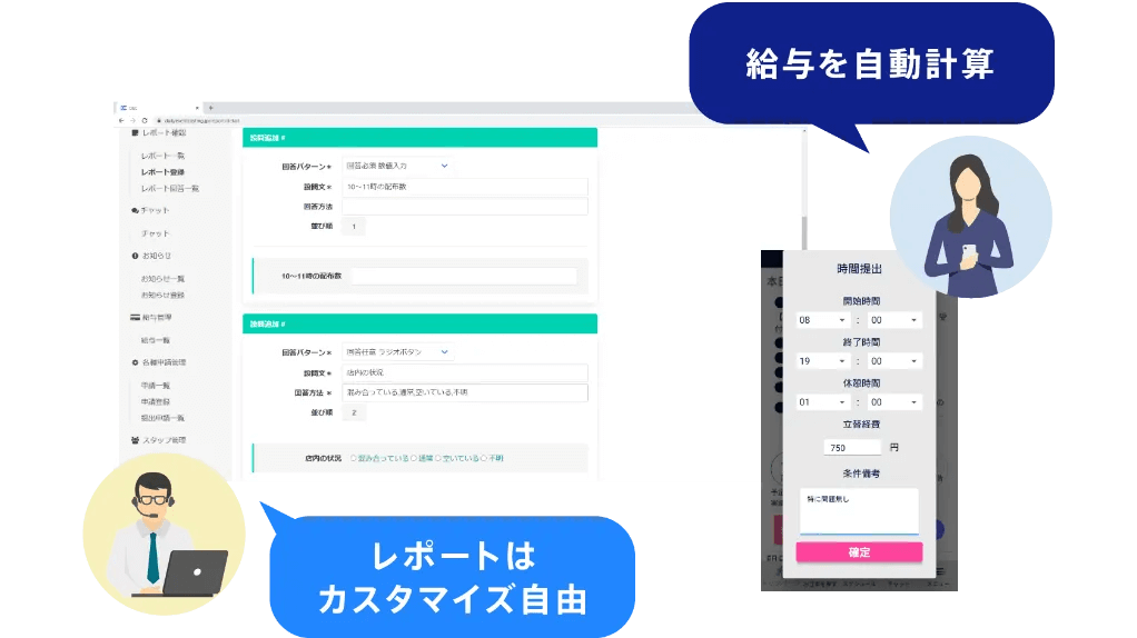 - 給与自動計算: 勤務時間や案件条件に基づき、給与計算を自動化します。これにより、給与計算のミスを防ぎ、時間を節約できます。